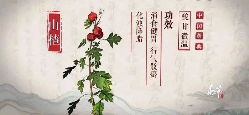 山楂味酸甘,性微温,归脾胃肝经,可以消食化积,行气散瘀。