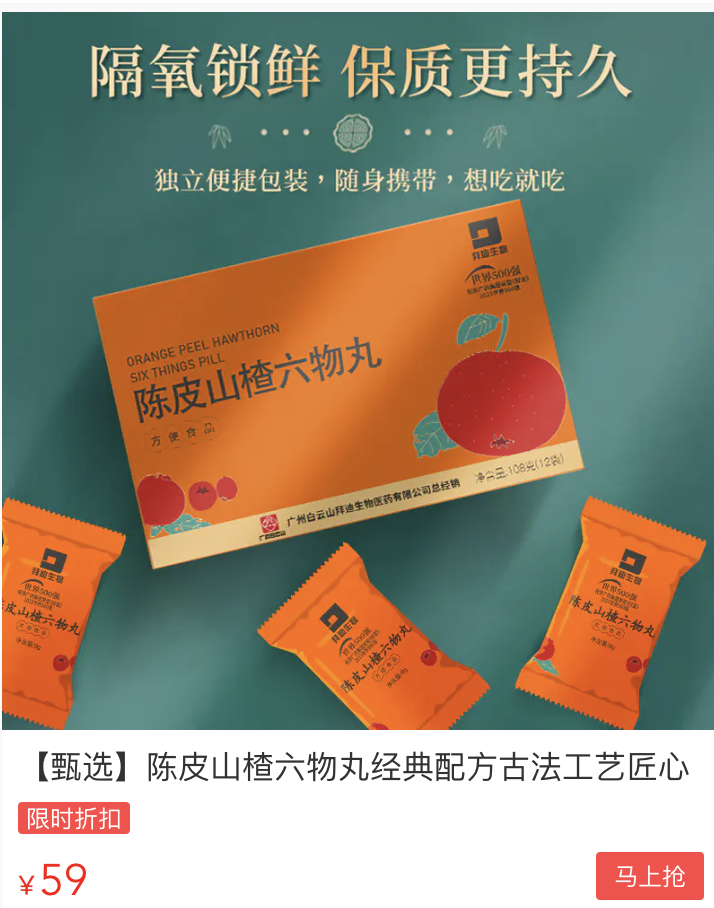 今天给大家带来这款白云山拜迪——陈皮山楂六物丸。