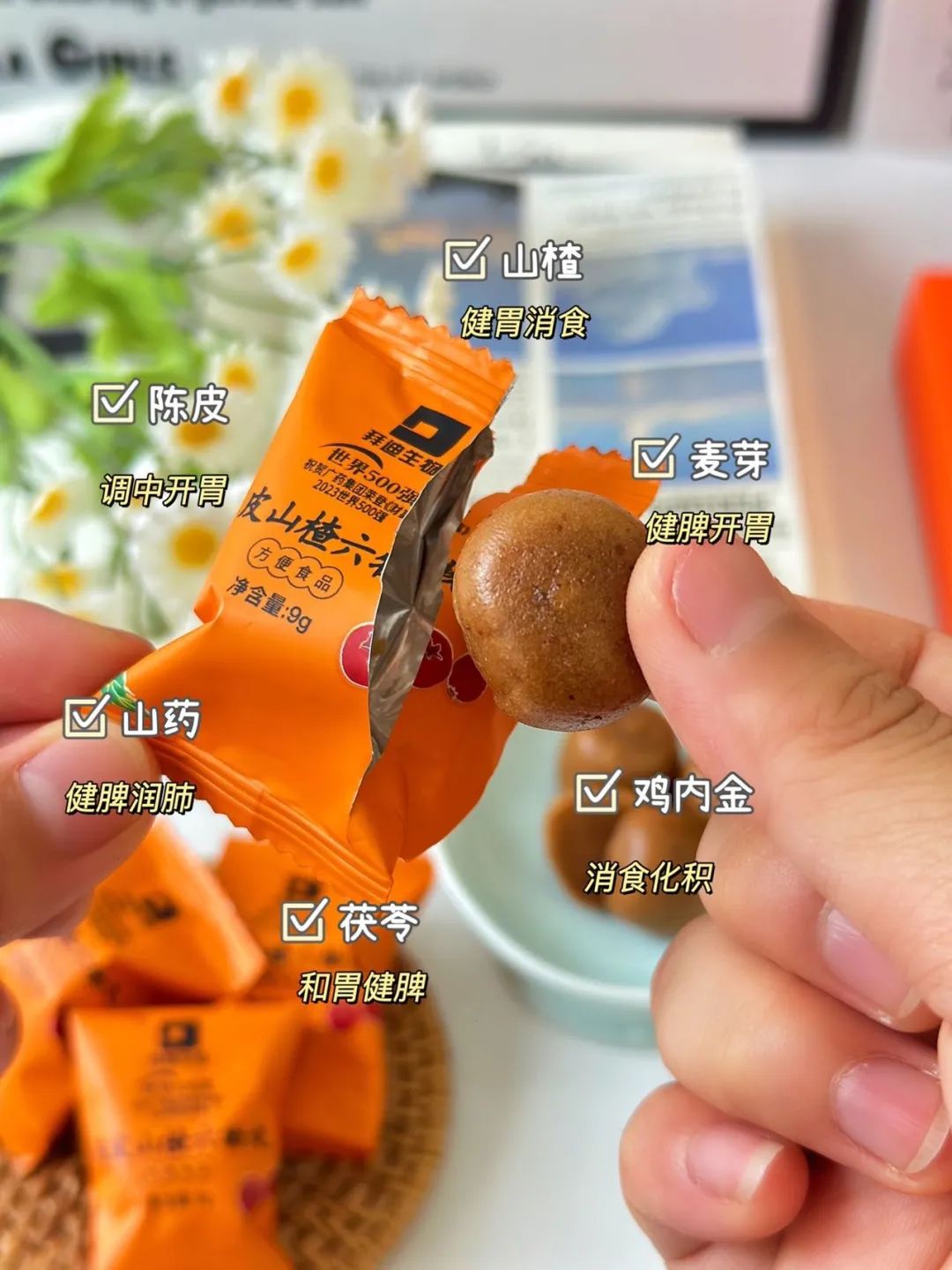 ✅甄选原产地山楂、陈皮、麦芽等六种珍贵药材,科学精心配比,古法工艺制作而成