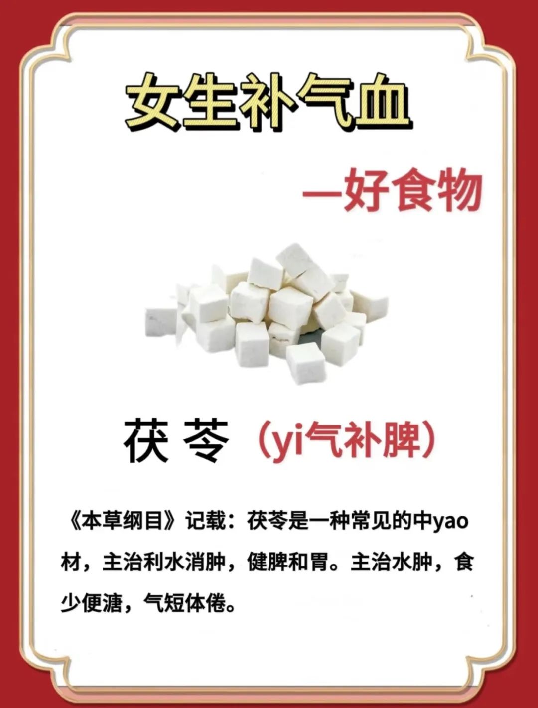 ✅云南茯苓:云南是茯苓的道地产区,老树茯苓,清香绵密,性平、味甘淡,有利水渗湿、和胃健脾、宁心安神的作用。