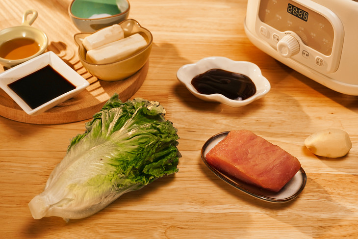 1、瘦肉洗净切块,放入盐、料酒、姜丝、生抽、蚝油,腌制半小时。