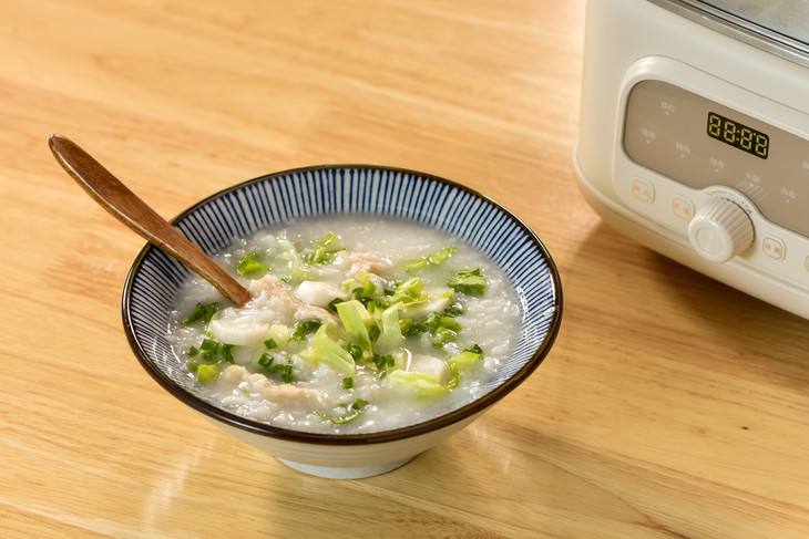 3、墩墩锅中加入适量的水,放入大米和淮山,选择“快煮功能”煮半小时左右。
