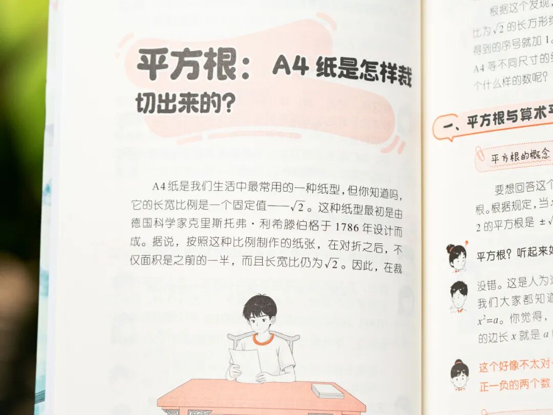 在数学中,用A4纸带孩子认识数学平方根,同时还给孩子科普历史。