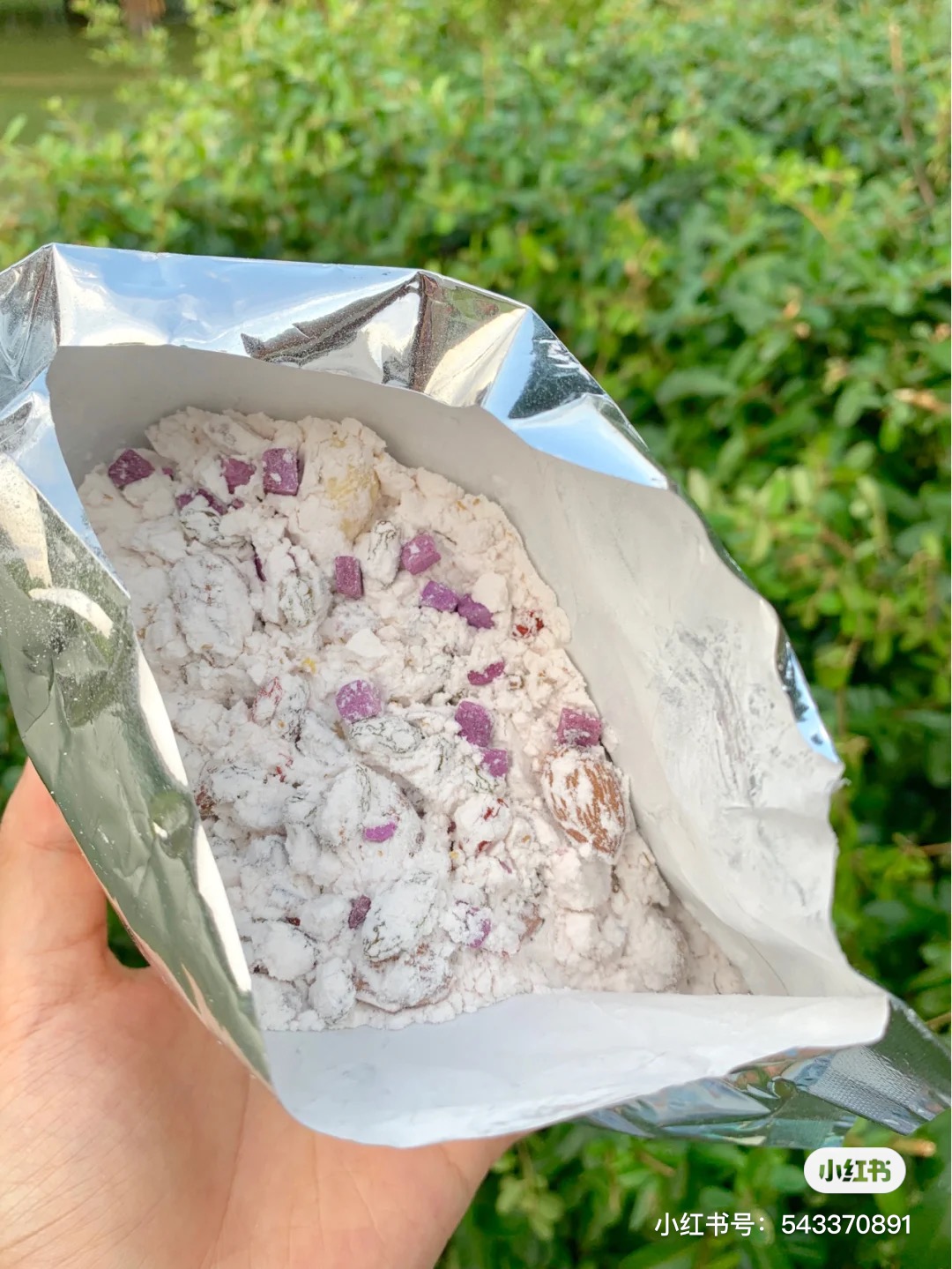 打开后就看到好多坚果🌰和果干🍇,里面🈶腰果、巴旦木、蔓越莓、葡萄干、紫薯干、桂花~
