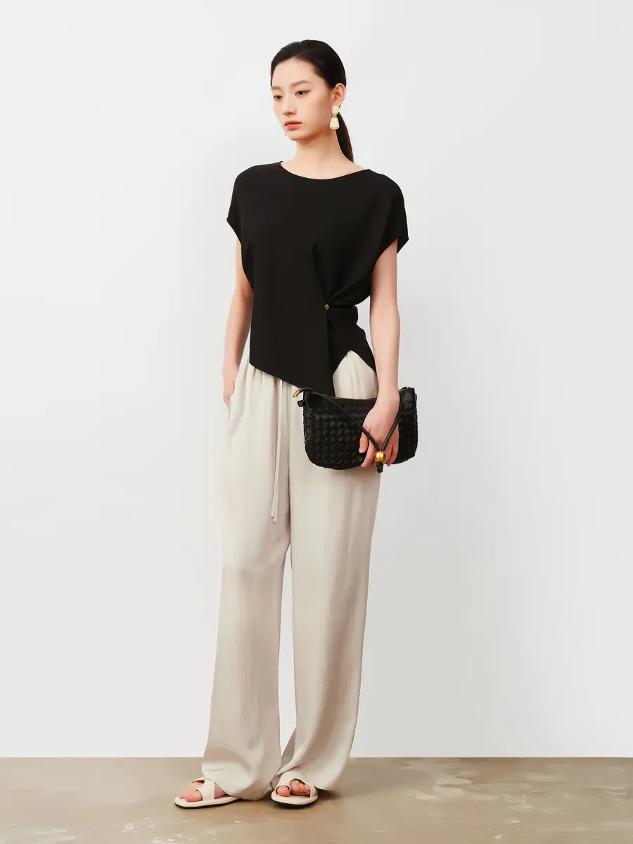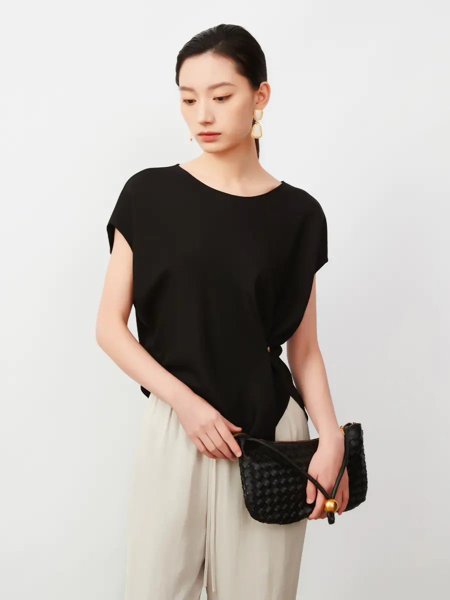 黑色不规则桑蚕丝上衣|小蛮腰间的温柔宣言