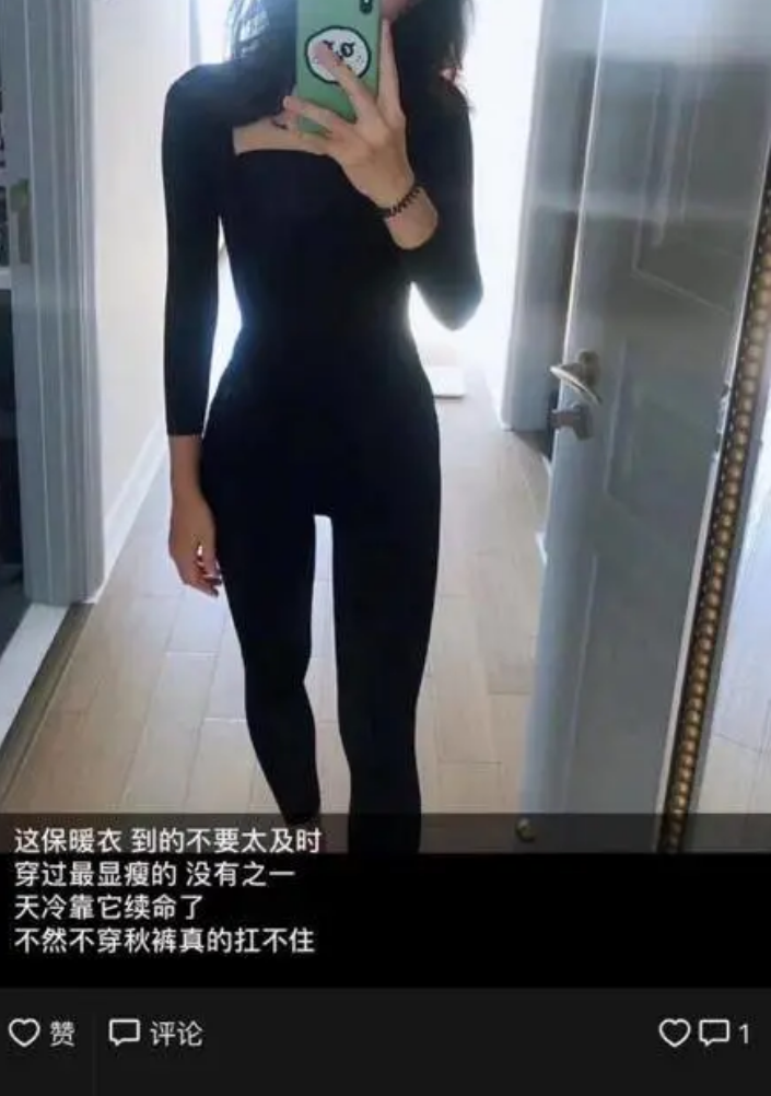 她说在冬天,在保证温度和形象方面,她最喜欢的就是连体塑型衣。