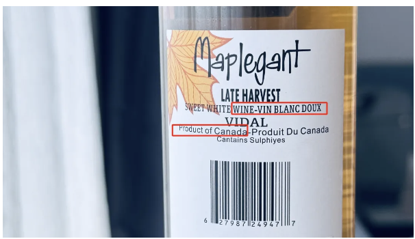 3️⃣瓶身背标“WINE-VIN BLANC DOUX”、“Product of Canada”,容量基本以375ml或200ml为主。
