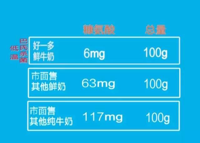 从实验数据可以看出:好一多天然纯鲜奶,糠氨酸含量是 6毫克/100克、而市面上其他巴氏杀菌乳的糠氨酸含量为 63毫克/100克;另外,市面上一些采用超高温灭菌的纯牛奶,其糠氨酸的含量达到 117毫克/100克。
