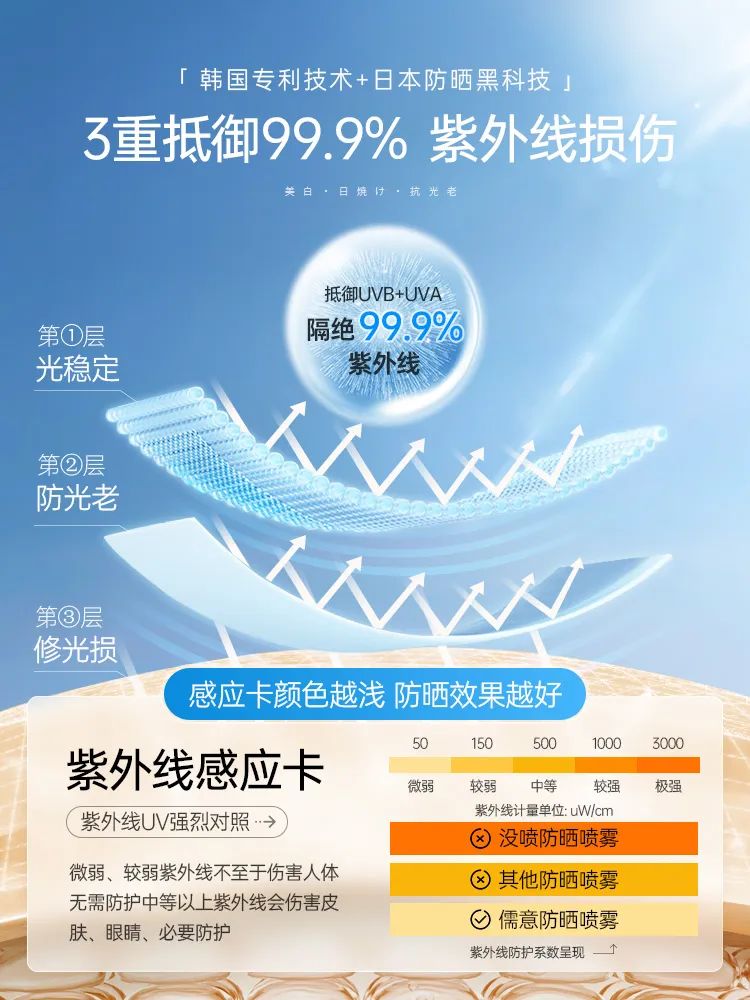 两项防晒黑科技叠加,防晒值瞬间拉满!晒红、晒伤、晒黑、晒老、晒斑,统统不存在的!