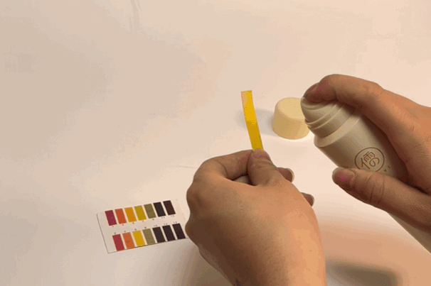 我们对其进行了pH测试,酸碱度呈现弱酸性,非常温和,不会刺激到肌肤。