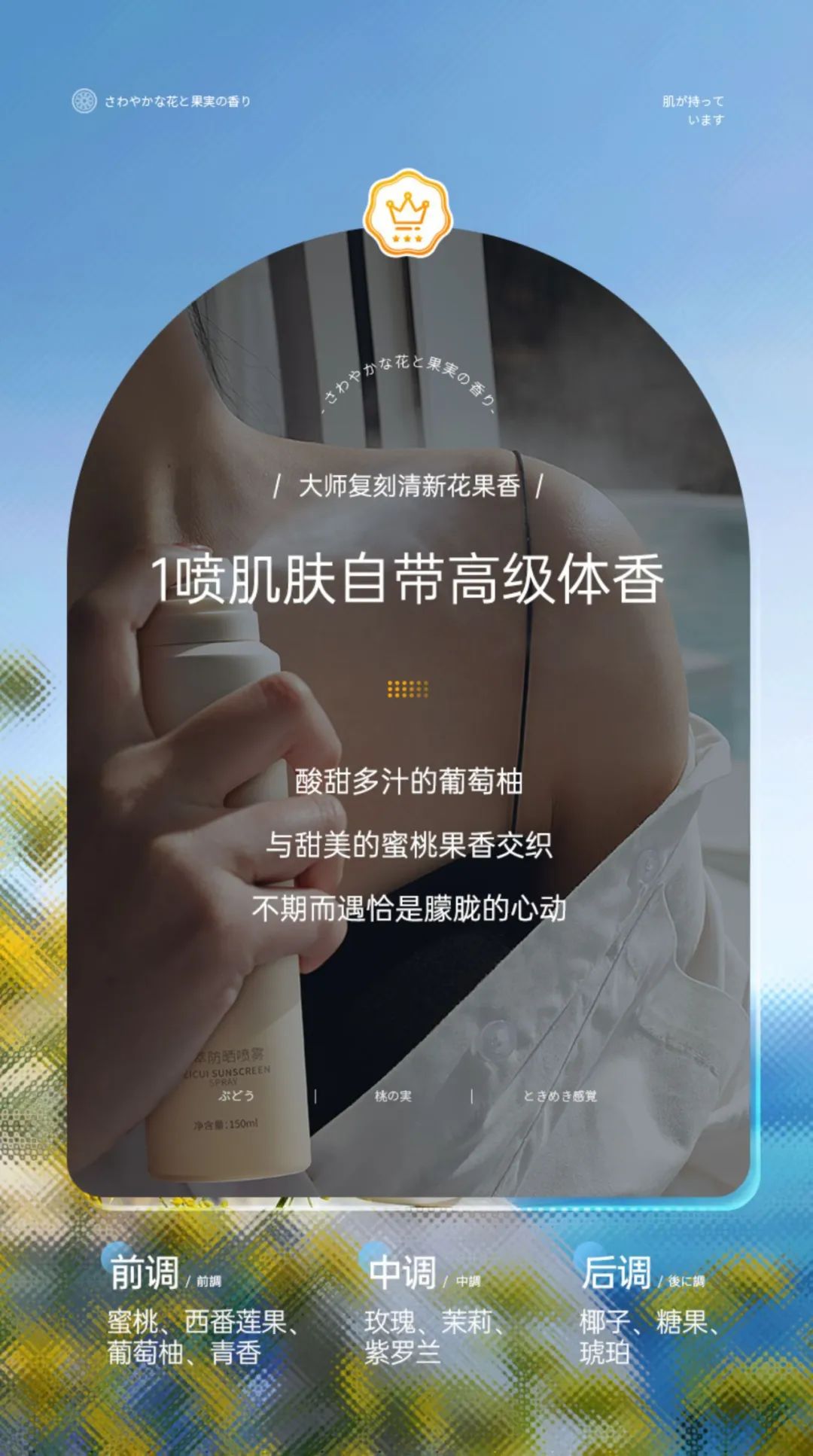 最让人惊喜的是,它喷完还能让肌肤自带体香,一种甜美的清新花果香味,让人心动不已~