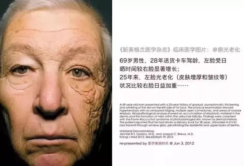 典型代表如货车司机、长期暴晒的户外工作者,皮肤衰老速度大多都比每天呆在室内的同龄人会更快一些。