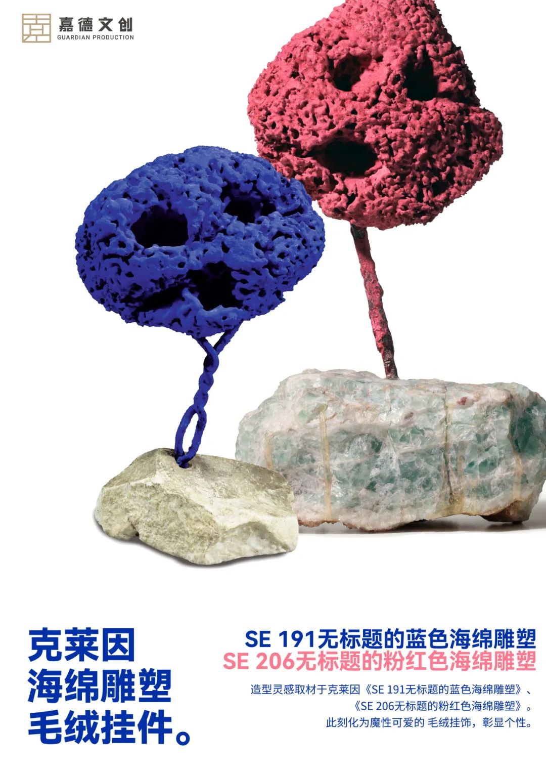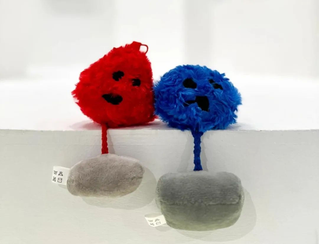 红蓝CP玩偶的造型灵感取材于伊夫·克莱因的《SE 191无标题的蓝色海绵雕塑》《SE 206无标题的粉红色海绵雕塑》。