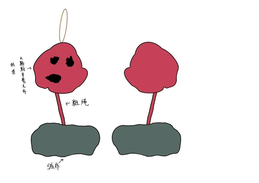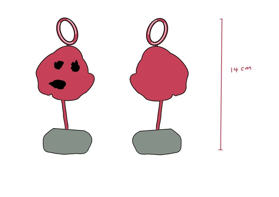 我们在最初观察克莱因的海绵雕塑原作时,发现雕塑的表面凹凸不平,远看好似一张带着表情的脸庞。海绵本身就是一种自然有机生长物,在克莱因年轻时就一心专注的玫瑰十字会学说中,海绵是象征着广阔无边的多样化精神领域。于是,我们便想到也许可以将这种有机生命体赋予一个新灵魂存在的可能性,经过反复不断的设计、画稿、修改,最后化身成为这款海绵玩偶。