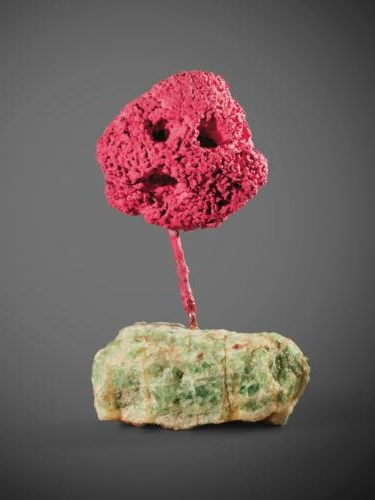 克莱因将海绵安置于石头基座上,就像是一个人头雕像一样,海绵雕塑可以让人联想到观者的肖像,见证了智力和精神层面互相渗透的状态,象征着生命节律的缓慢交替。