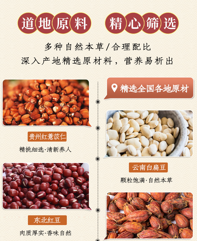赤小豆:含有蛋白质、维生素B、烟酸、铁和皂草甙物质