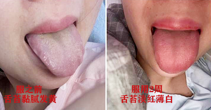 舌苔黄腻,厚厚的舌苔铺满了整个舌头