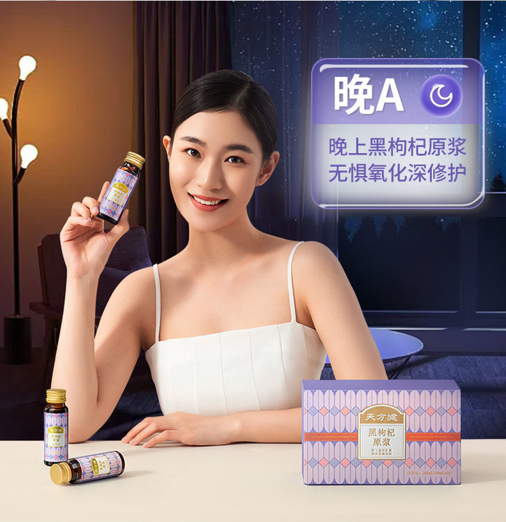 夜间入睡,原花青素可以帮助修复白天带来的损伤,促进肌肤的自我修复。同时黑枸杞归肝经、肾经,有补肾益精、护肝明目、增进视力、美容养颜、改善皮肤等功效。