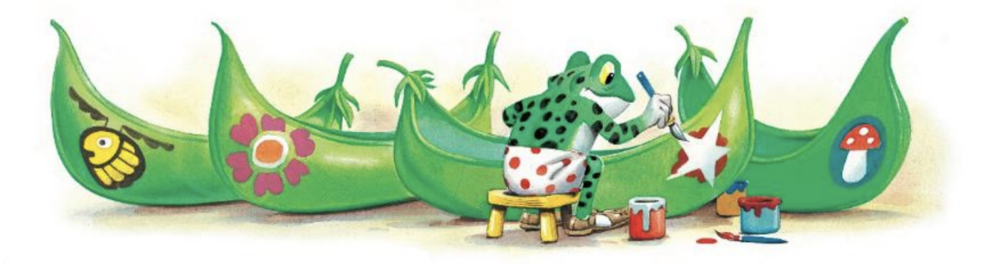 原来是聪明的小青蛙,用一个个豆荚壳绑起来,在上面铺上树叶和草,变成了一座美丽、牢固的小桥。