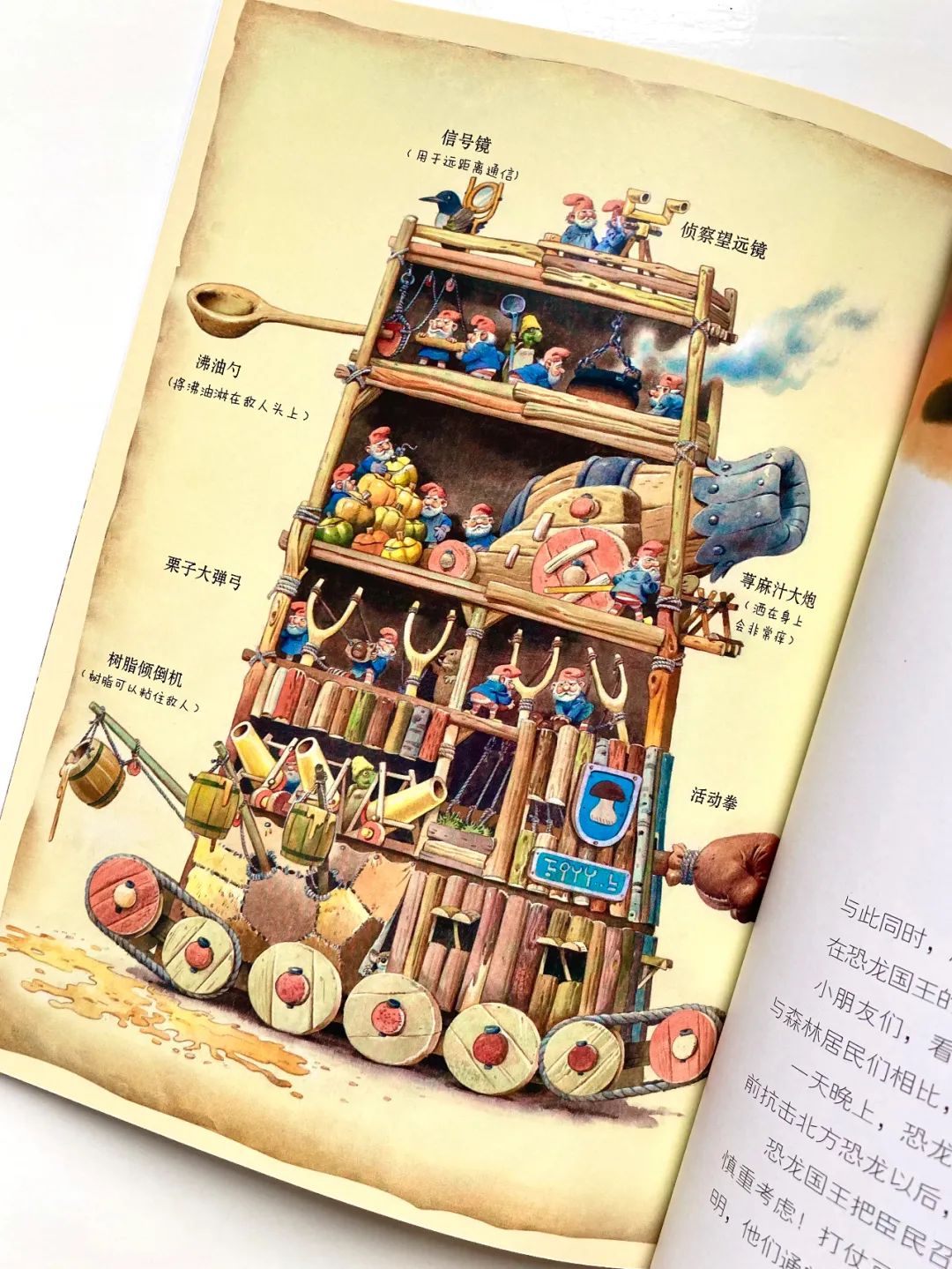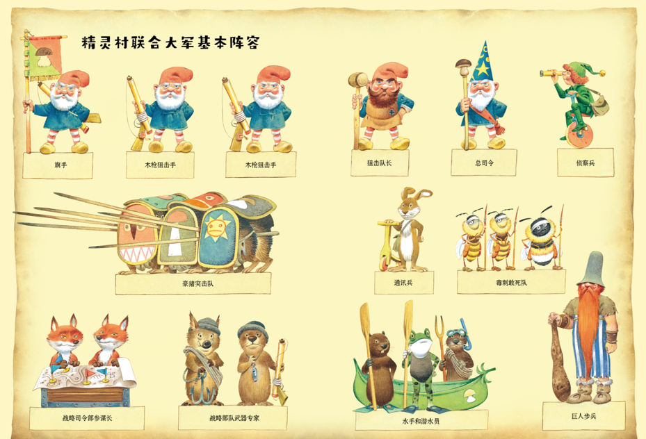 书中还详细勾画了小精灵族群的武装体系。每个画面细节都值得孩子反复欣赏、观察、思考。