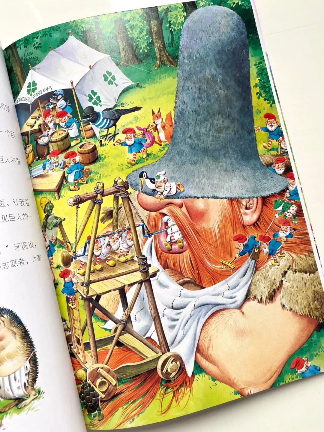 还有小精灵们齐心协力帮巨人医治牙齿,细节满分。