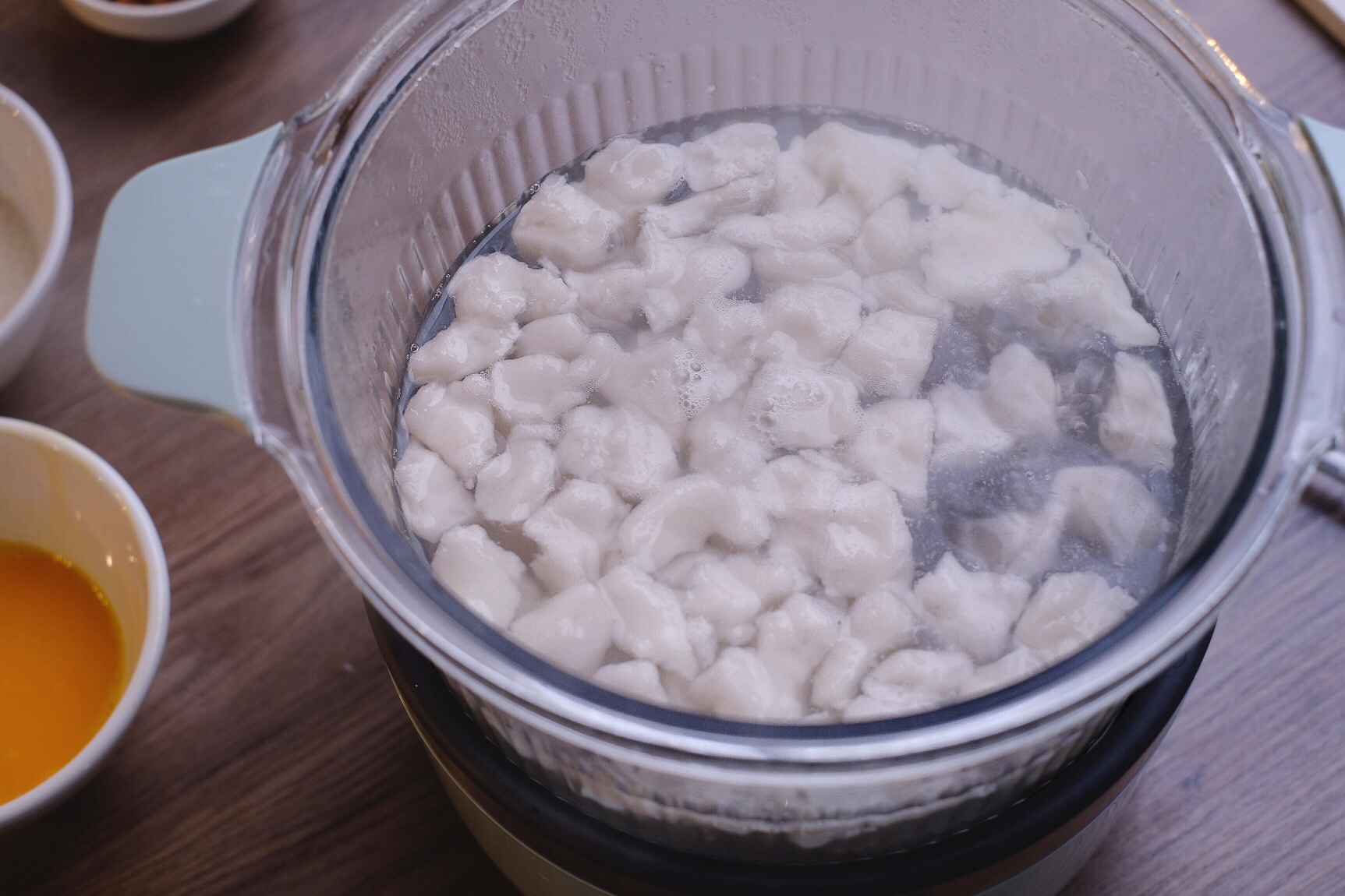 4. 东菱养生锅插上电,加适量水,成品需要几碗,就加几碗水,全程保持“快煮”功能~
