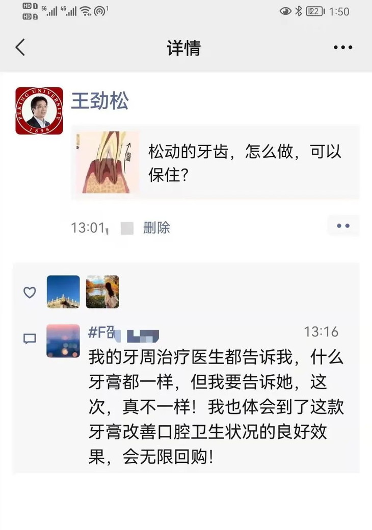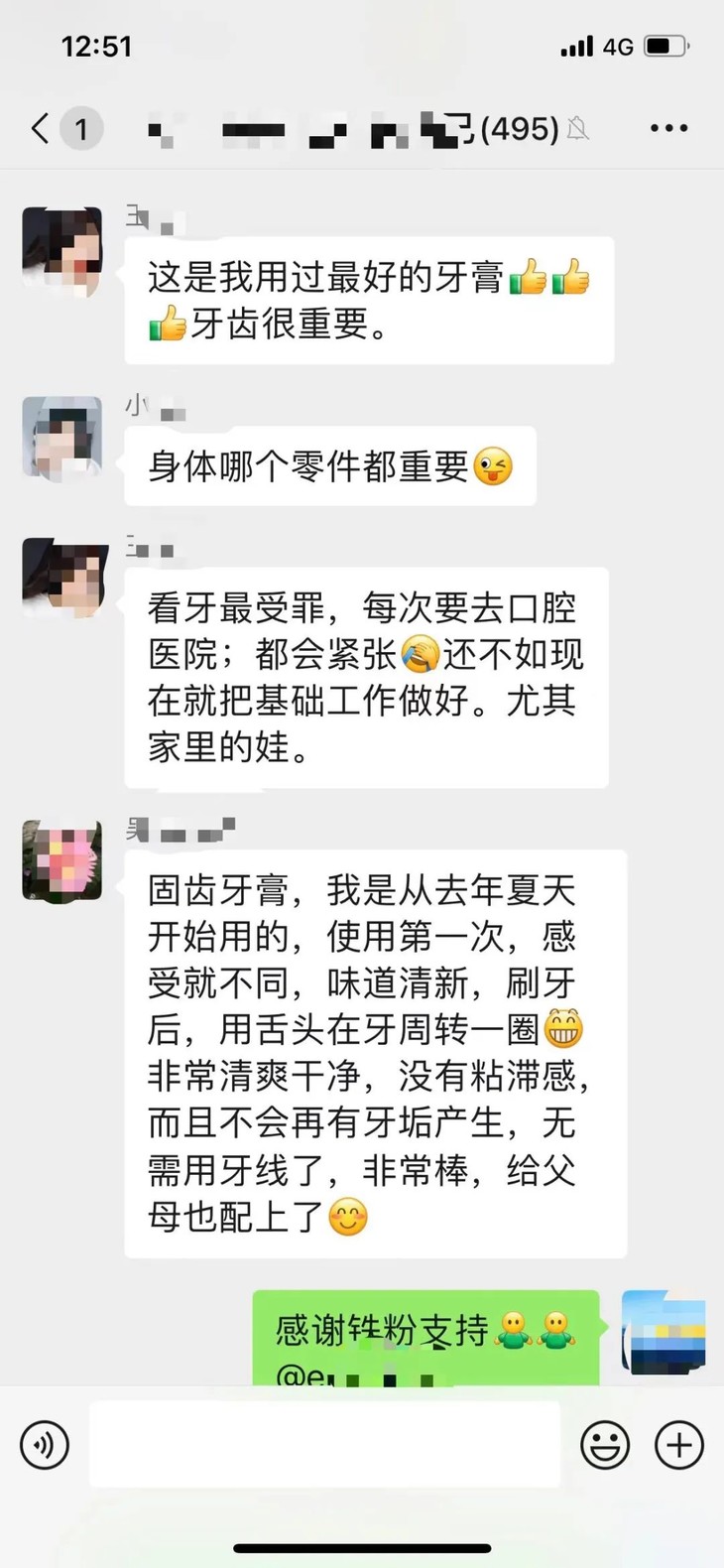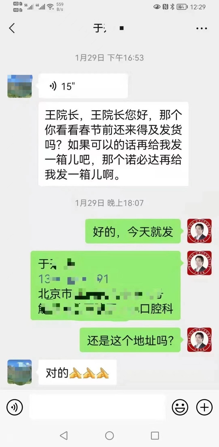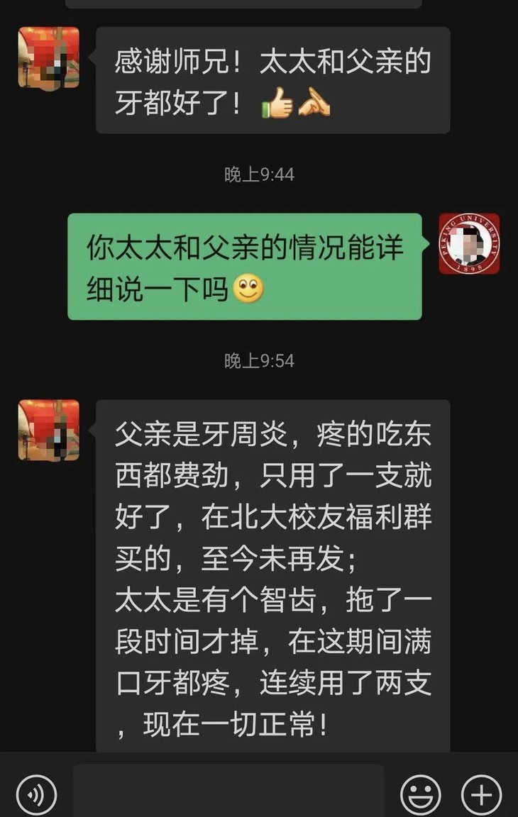 后来,一件巧合的事情发生了。大概在春节后的第二周,专家给我打电话,他说,他当时真没把我们的牙膏当回事,拿了之后就随手扔在了角落。春节期间,他吃骨头时硌到了一颗后槽牙,出现了牙隐裂导致的牙齿敏感。结果他自己一直用的那款牙膏刷了两个星期都没有明显好转。这时候他想起了我们的牙膏,既然我说牙膏那么好,那就找出来姑且试试。让他惊喜的是,才用了3天,牙齿敏感问题就解决了。至此之后,这位专家开始成箱购买我们的牙膏送高端客户,成了我们的超级铁粉。今年春节前买了多箱赠送给客户。