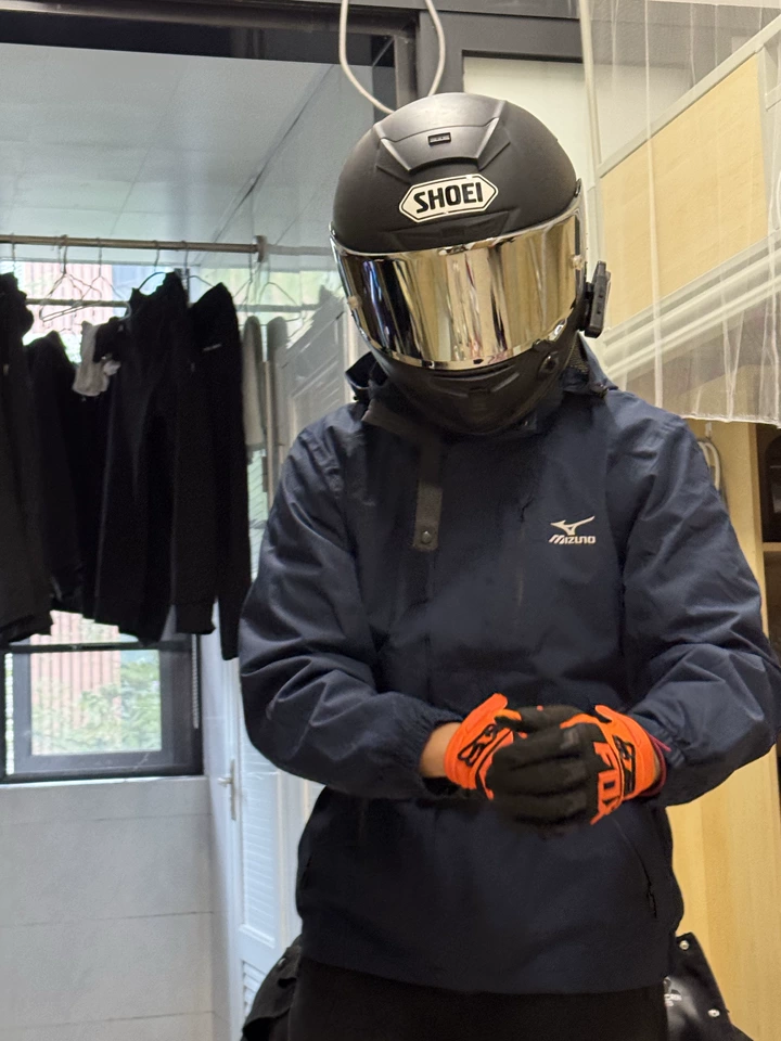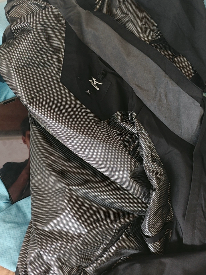 美津浓这件硬壳高达10000+的大雨级防水指数像一把坚固的移动雨伞,淋上去的水直接滑落,无法渗透进内里,防透湿效果相当牛!