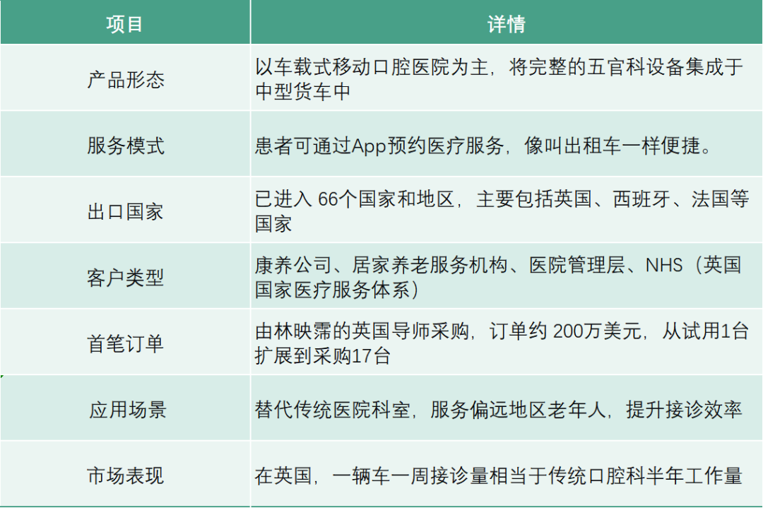 但易府医疗不着急,毕竟“当年在英国也不被看好”。如今正稳步推进,计划让口腔医疗车向“五官综合移动医院”升级,整合耳鼻喉、眼科诊疗功能,提升单设备服务覆盖范围,摊薄边际成本。