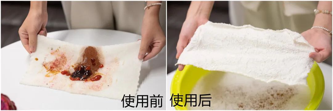 看这毛巾前后对比,家里沾上任何污渍的衣物和老旧发黄的衣服都不再怕洗不干净了!