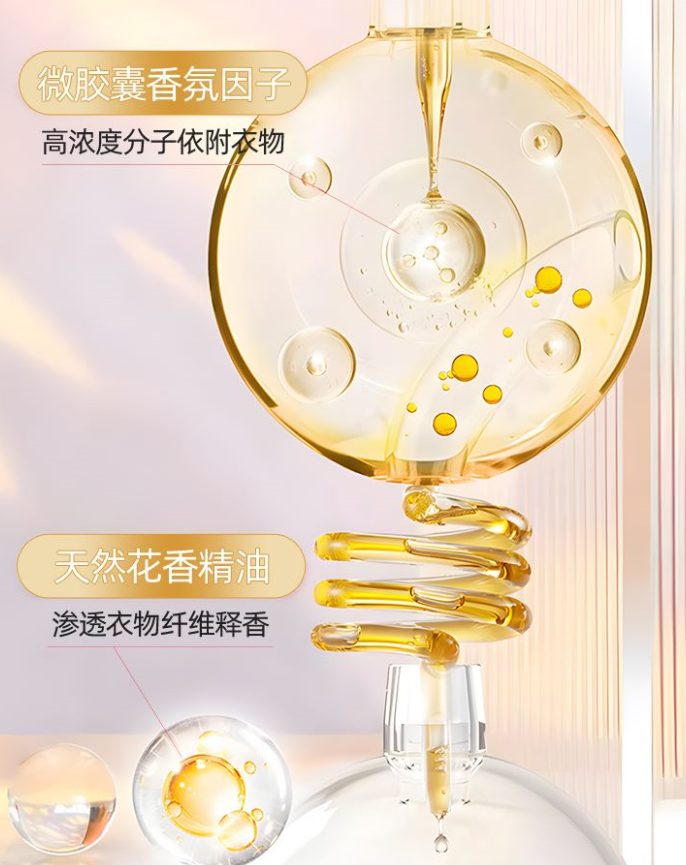 高浓度微胶囊香氛因子依附衣物、天然花香精油将珍贵香气藏在衣服纤维之间。