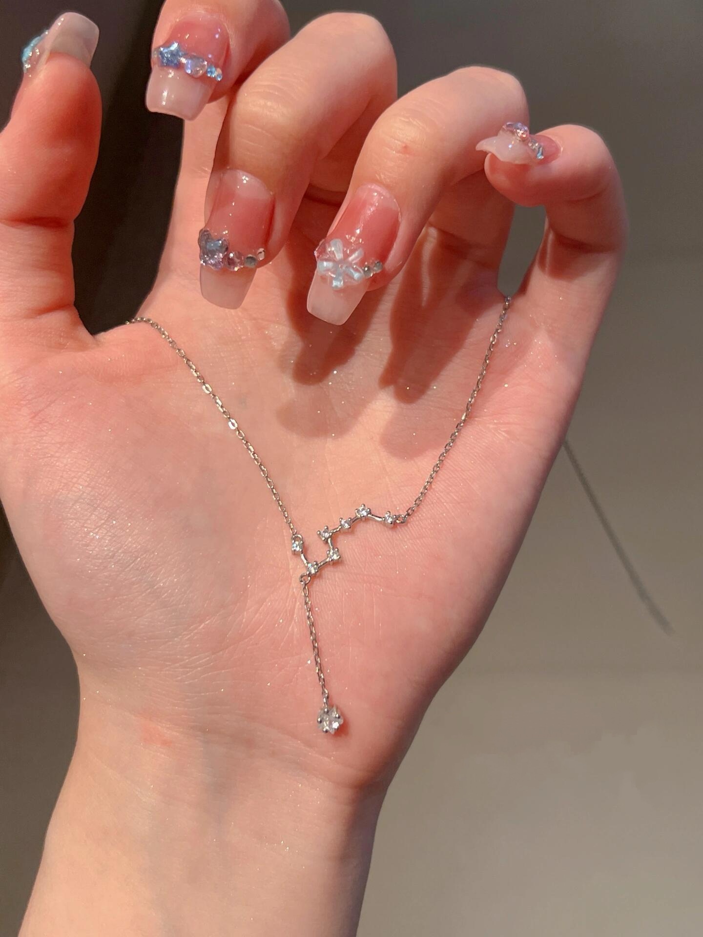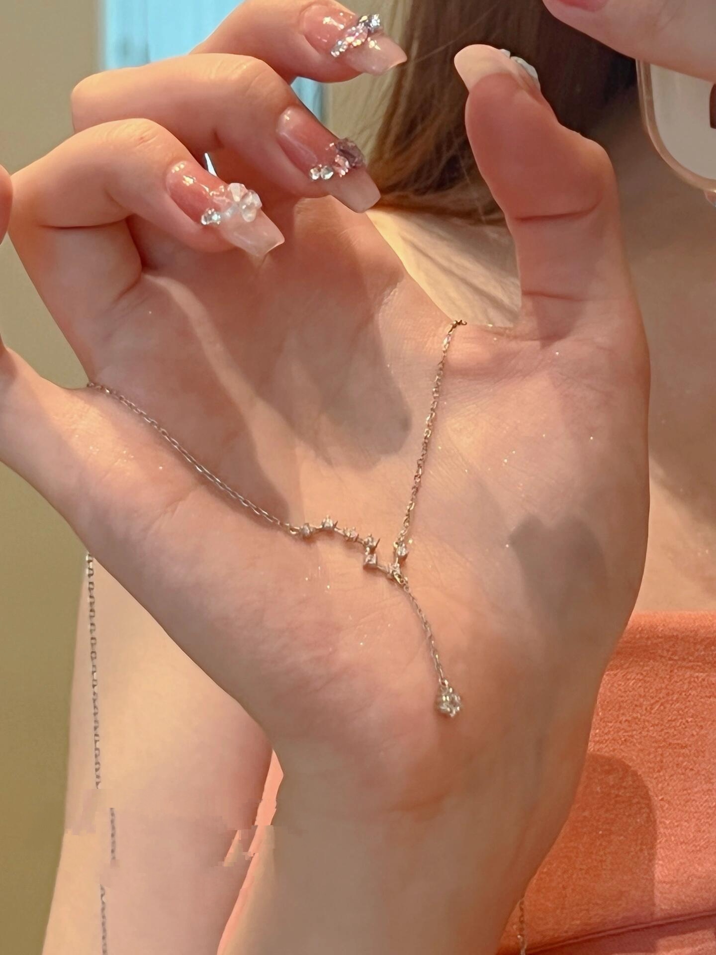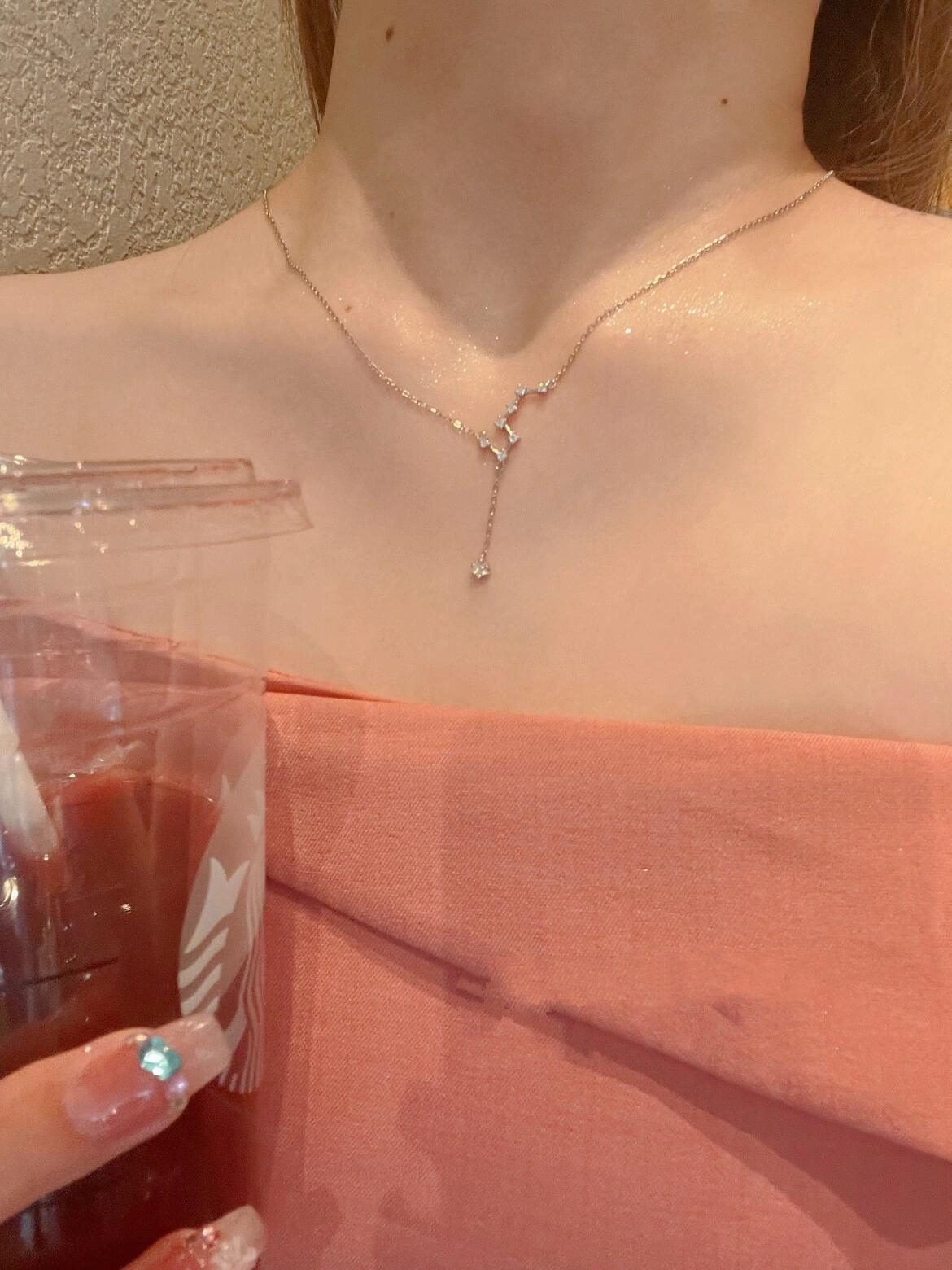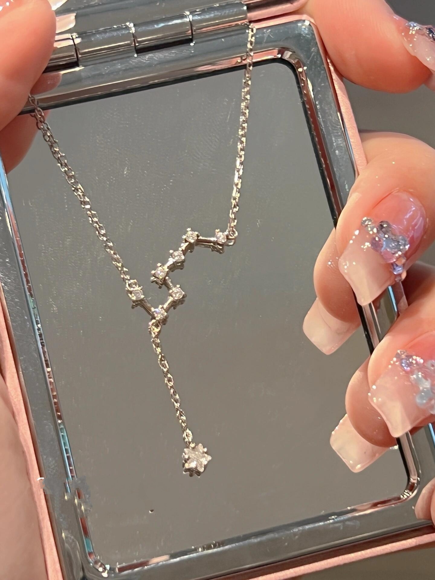 北斗七星坠着一颗最亮的星,别出心裁的设计感。银条折线与锆石镶嵌,可酷可甜,气质大方,闪亮百搭。