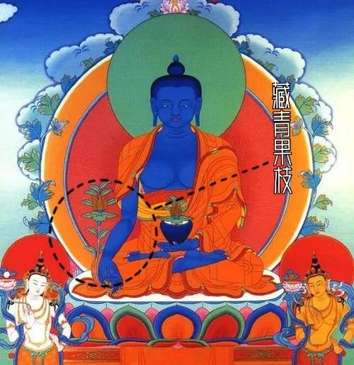 他左手托药钵,而右手持的就是这个藏青果的枝条