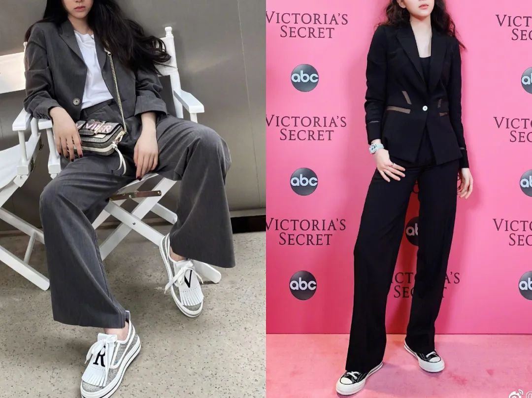 想要休闲气息更重的,还可以像赵小仙女这样,一件oversized的T恤,也太养眼了。