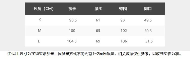 裤子是弹力腰围的,所以在选择的时候,主要参考裤长和臀围喔~