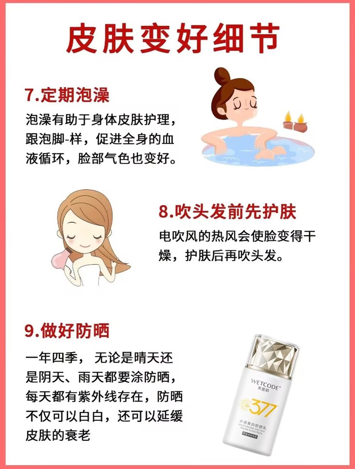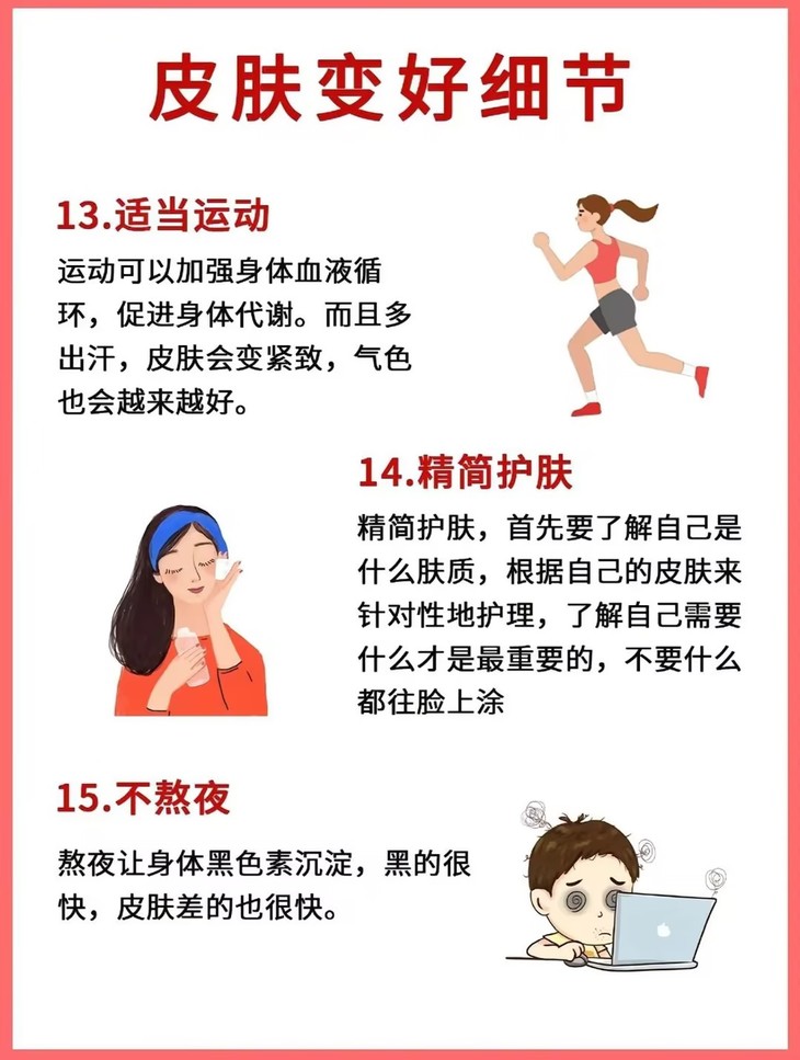 那么这些日常生活当中的养肤小细节你一定要知道,不仅可以变白,还可以让皮肤越来越好,坚持下去,你也可以是那个白到发光的小仙女!