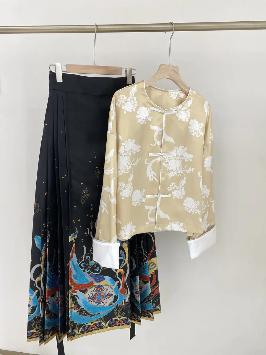 日常穿搭可以与马面裙作为搭配,或者配裤禅意感的阔腿裤也非常好看,单穿或者做外套都可以~