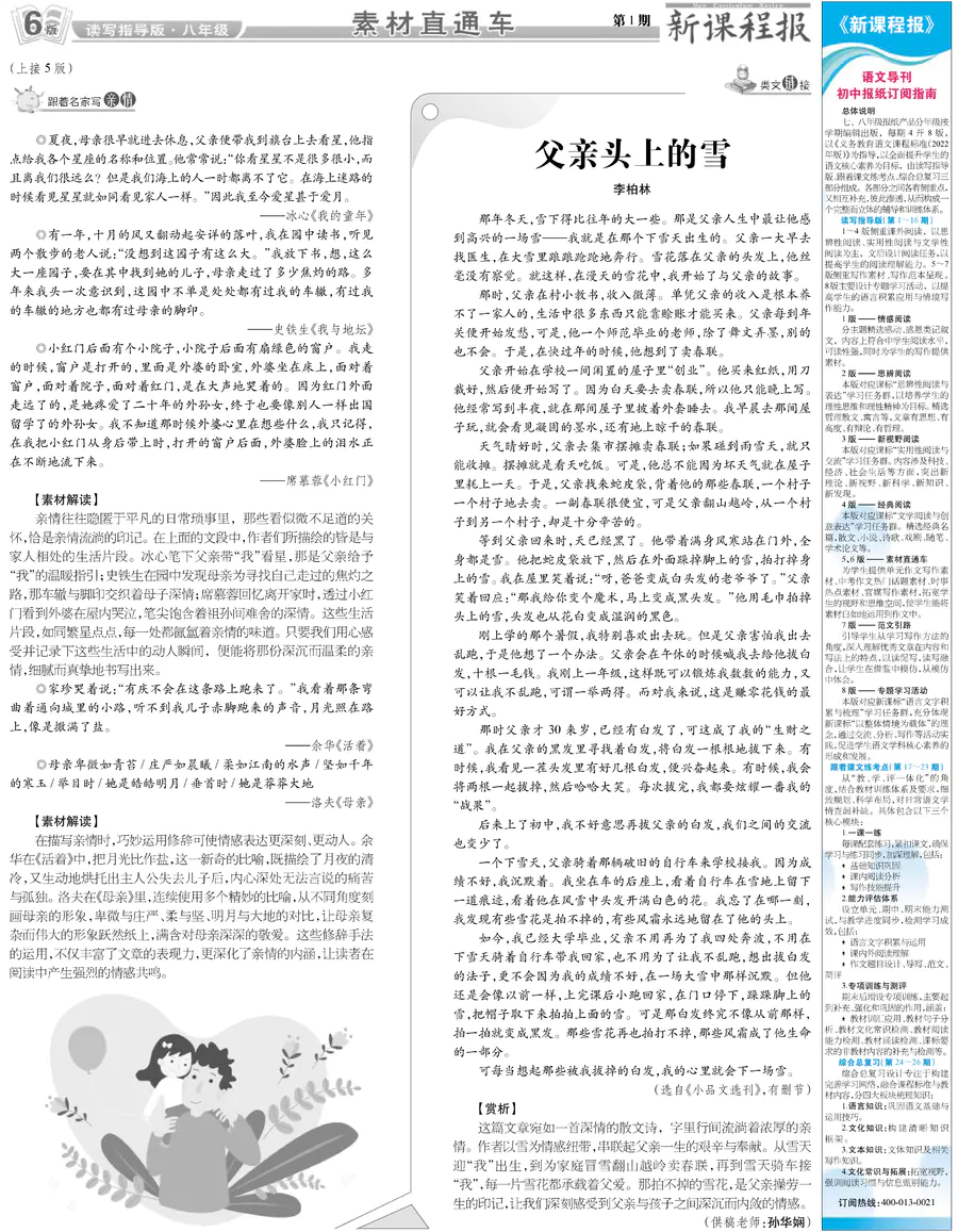 初中语文样报 八年级 读写指导版 第1期