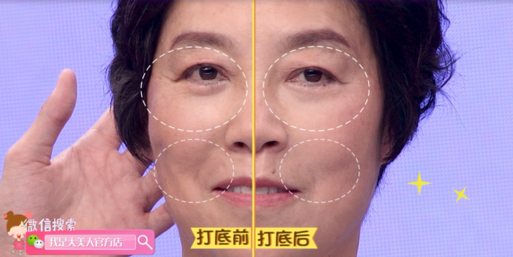 敲黑板:遮盖法令纹、黑眼圈别用遮瑕笔!用相对厚的粉底霜。