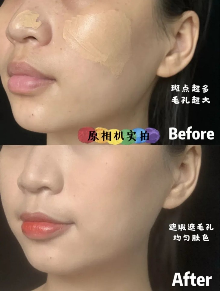 接下来看遮瑕度!夏季是容易脱妆的季节,光有水润度只是体感舒适,但遮瑕和持久度才是检验一款粉底液zui好的标准。
