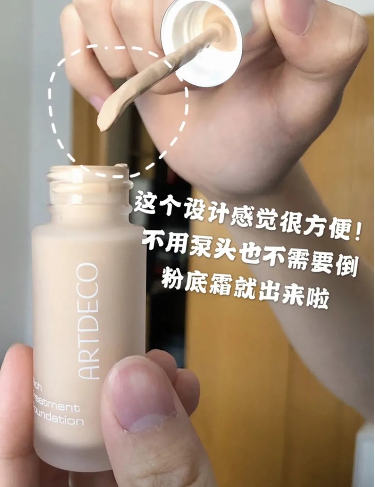 和传统粉底霜不同,这款设计果然很“德国”,打开后就是小挖勺,粉底霜不会漏出来,也不需要用手涂在脸上。