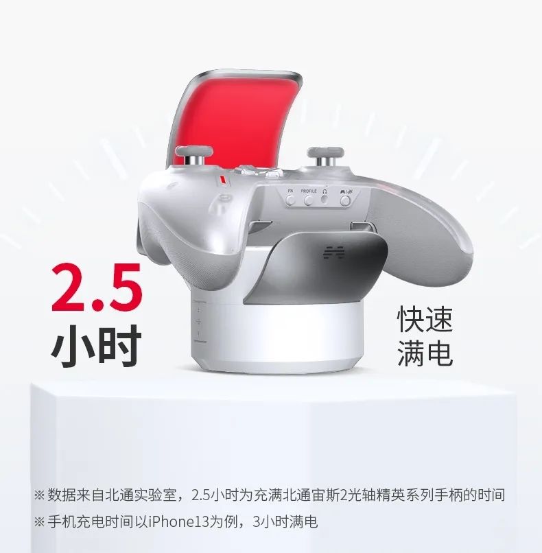 充电五分钟即可畅玩一小时,静可精美摆件动可闪耀电竞桌搭,北通无线充电底座助宙斯2玩家们随时满血上阵,能量满满!