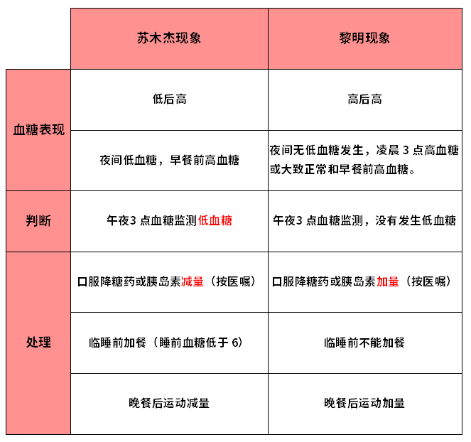 所以,当出现黎明现象或苏木杰现象时,一定要及时咨询医生,查找空腹血糖升高的原因,遵医嘱调整正治疗方案。