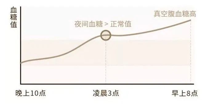 黎明现象是指患者夜间血糖控制良好,仅在黎明时分出现高血糖反应,血糖升高一般开始于凌晨3点左右,至早餐前达到最高点。