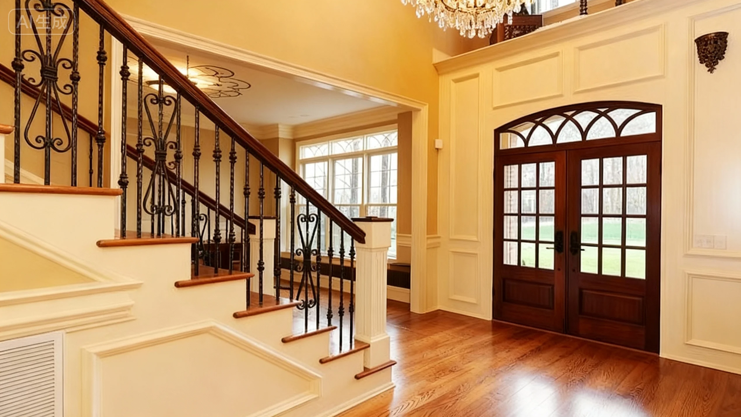 "静为山,动为水",楼梯是供人上下走动之用,象征屋宅内的"水",楼中楼或透天厝的屋内楼梯若是正对大门,则代表水往大门流出,水为财,楼梯倾斜度越大表示财的流失越快。