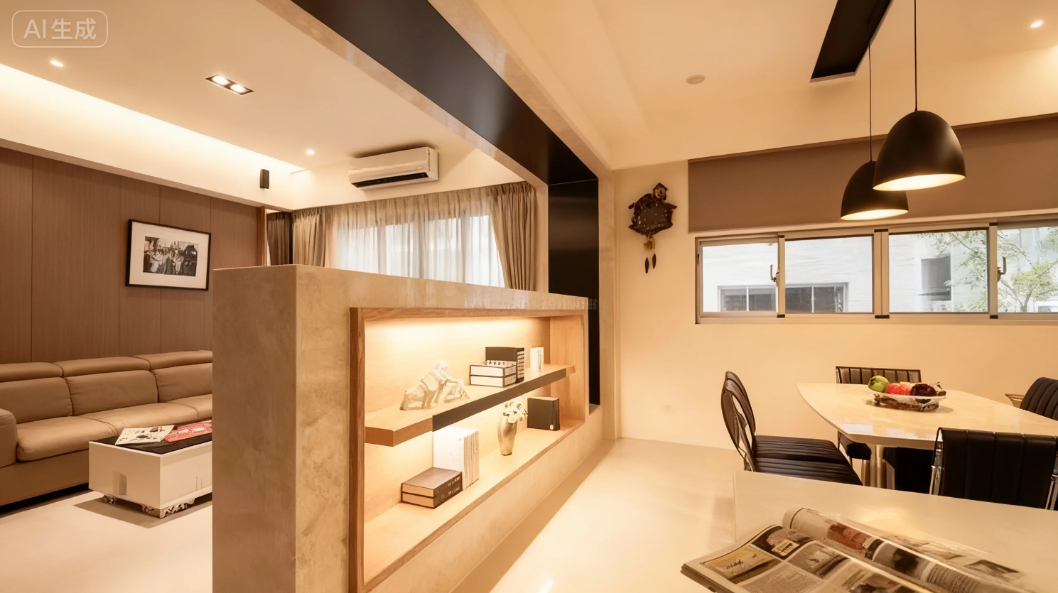 【改善建议】增加一些开放式的家具,如书架、屏风、隔断等,可以将部分墙面分割开来,使房间显得更加宽敞。如果不能拆除的墙面,可在墙面上悬挂一些积极向上的山水画,如:生生不息、事事如意等。