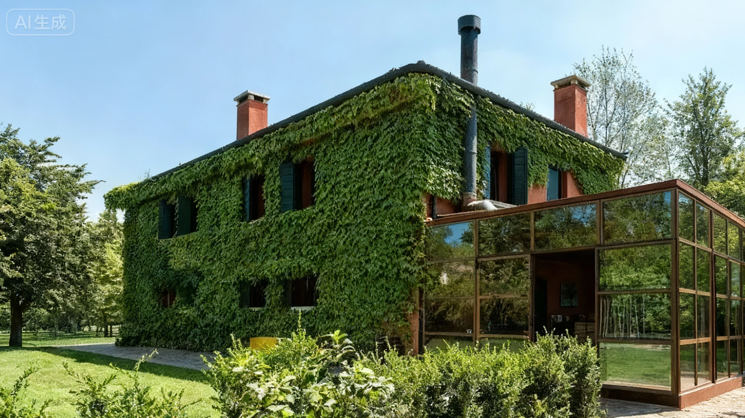8,住宅外墙被爬藤类植物包围