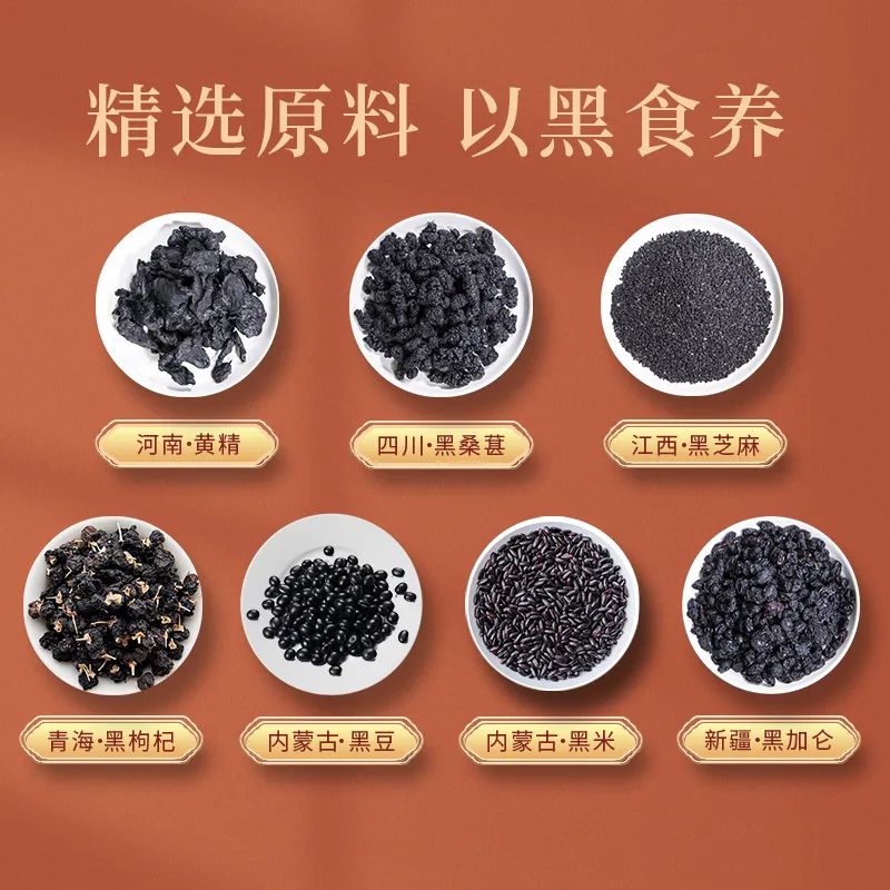 在黑芝麻、桑葚、黄精的基础上,加了核桃仁、巴旦木、南瓜籽。相比原味,它的口感和营养更丰富!