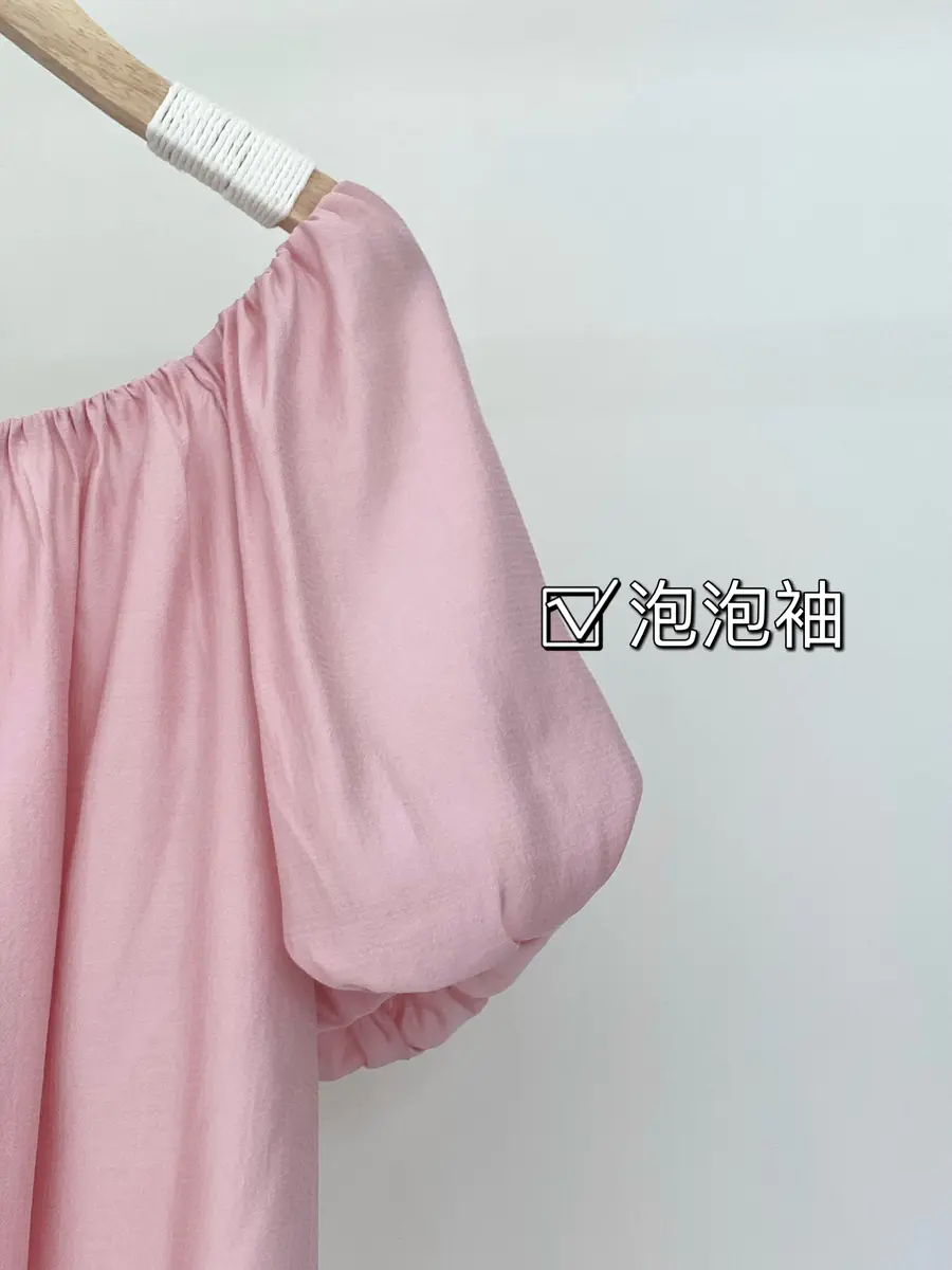 因为颜色很好看,所以设计也是比较简单,运用褶皱打造出层叠的感觉,并且利用泡泡袖让衣服更加立体