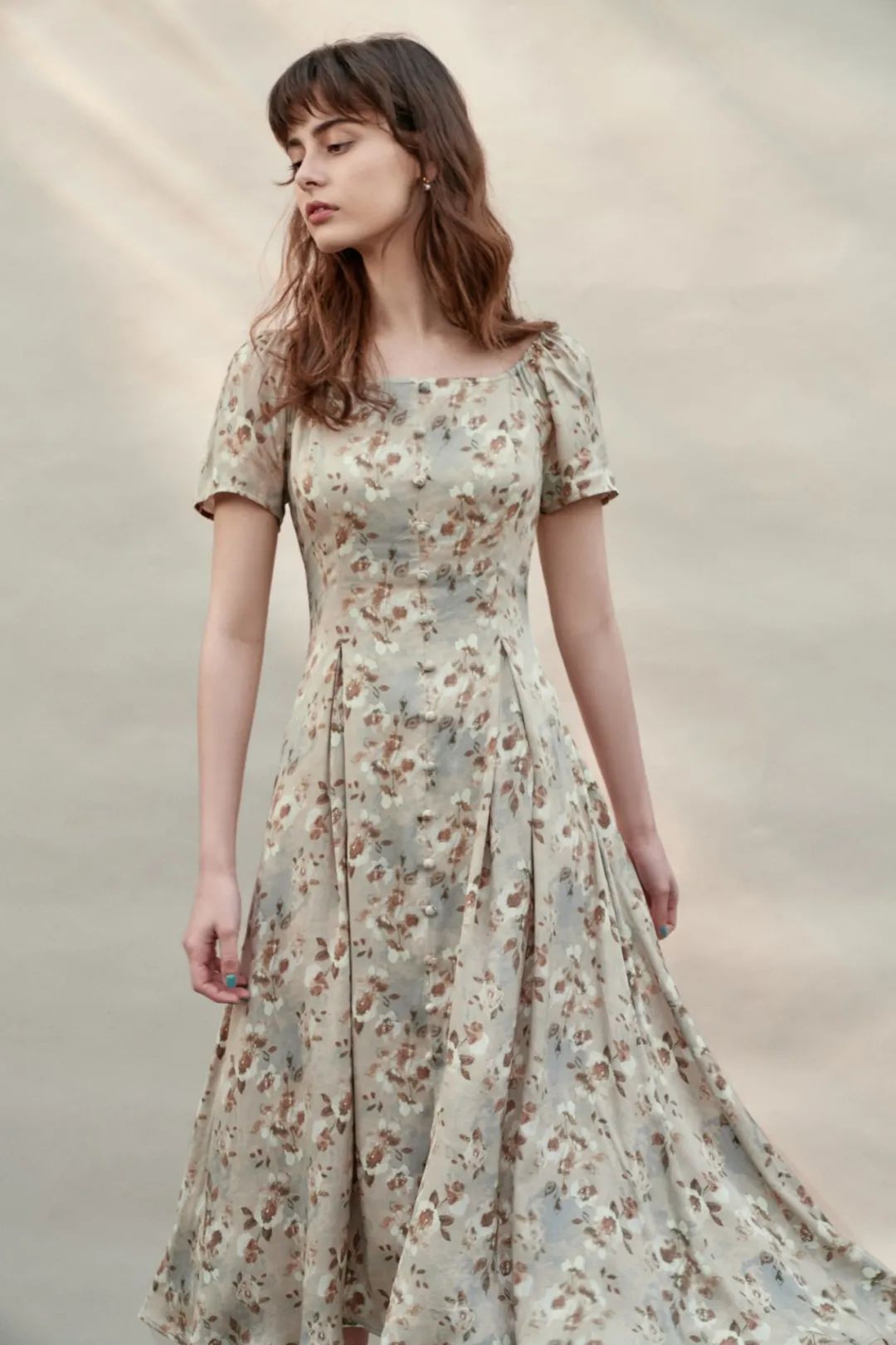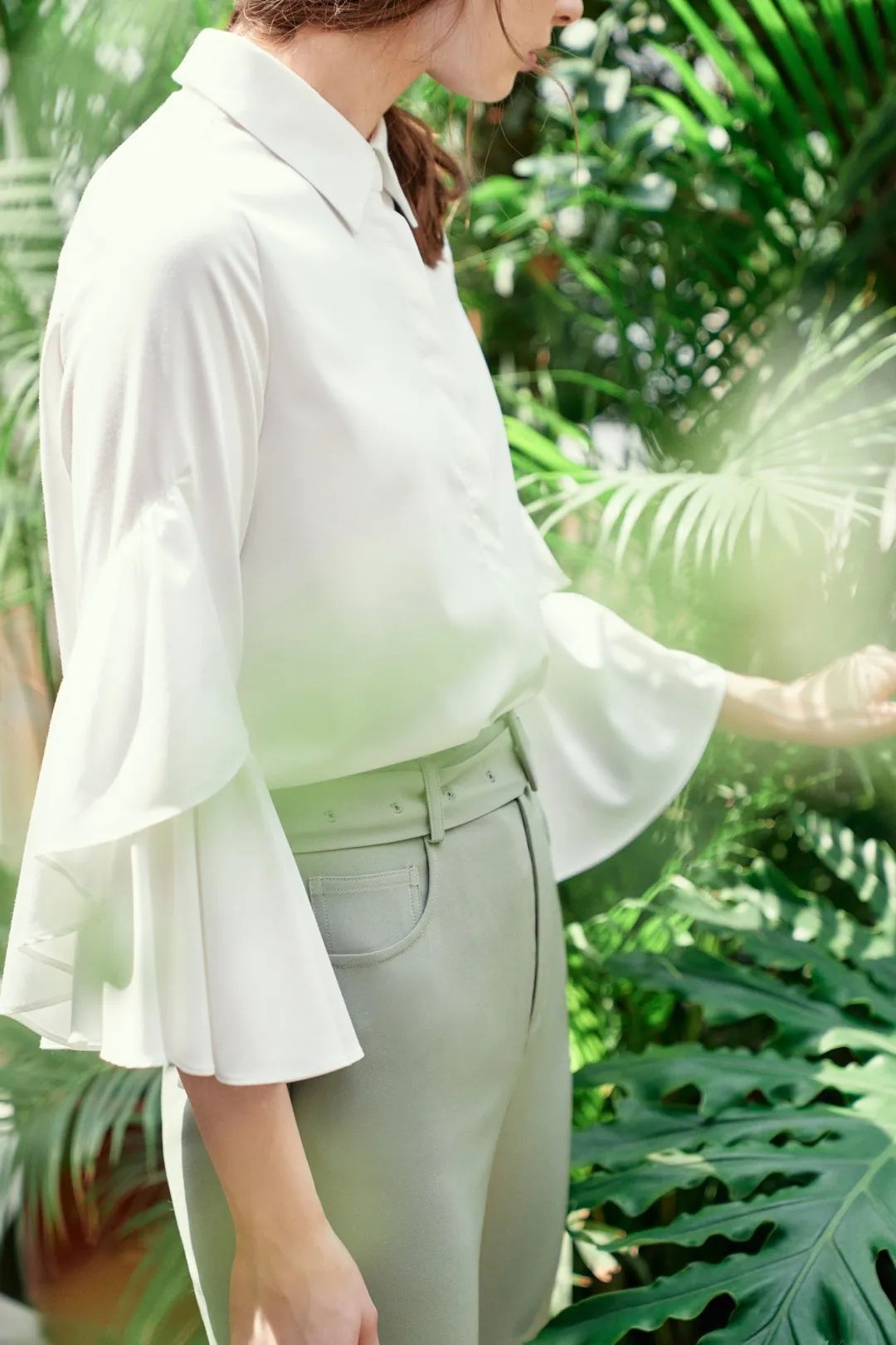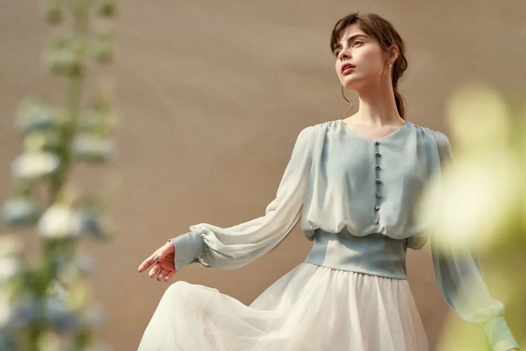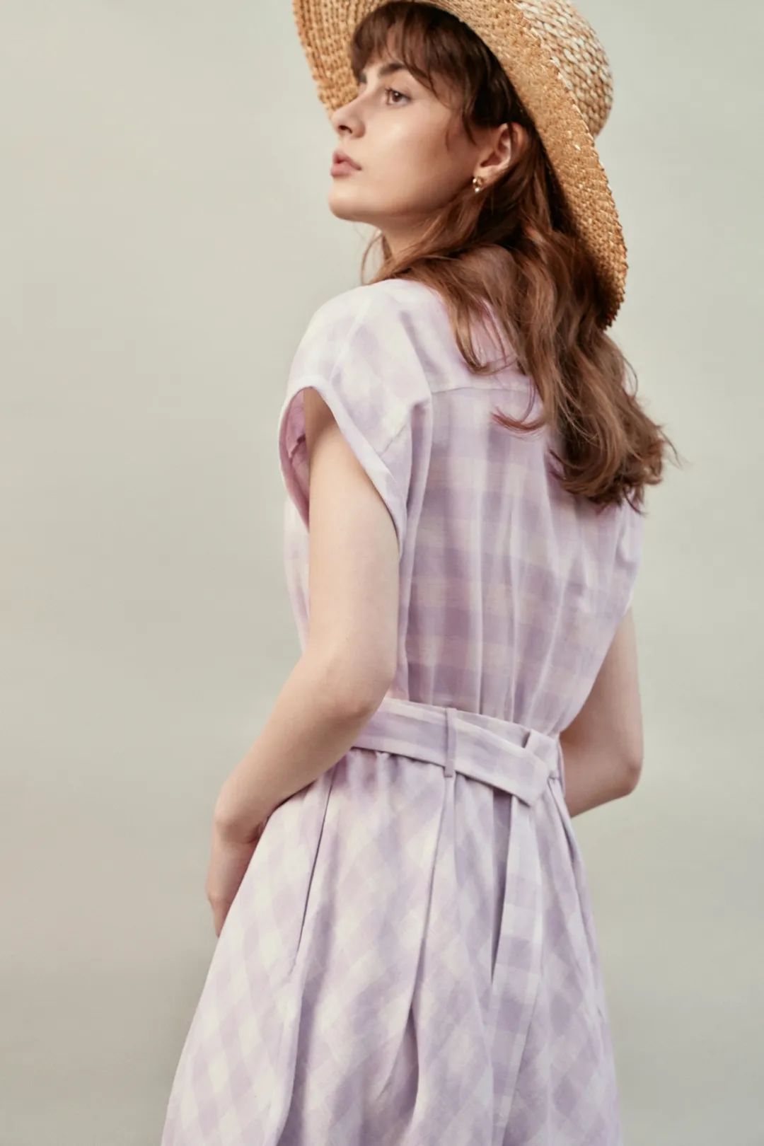 版型设计灵感来自优雅经典的50年代,收腰、方扣腰带、大伞裙下摆、衬衫领。▼